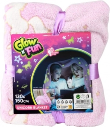Puha plüss takaró unikornisokkal és csillagokkal, melyek megvilágítás után a sötétben valóban világítanak. Elég egy kis fénynek kitenni, és élvezheted a varázslatos éjszakai fényjátékot, a kellemes meleget és a selymes puhaságot egyben.