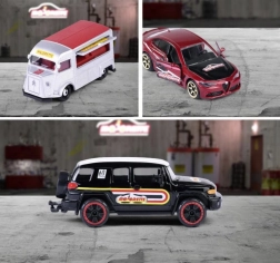 Minden kisautó fémből készül, nyitható részekkel (pl. ajtók, motorháztető vagy csomagtér) és rugózó futóművel a játékhoz és a kiállításhoz.