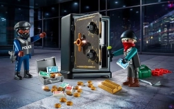 Szórakoztató kezdőkészlet a PLAYMOBIL City Action sorozatból, amely izgalmas akciót kínál – betörés a széfbe. A tolvaj megpróbálja kinyitni az erősen védett széfet, de a éber rendőr a sarkában van. A csomag része egy működő széf forgótárcsákkal és gazdag tartozékkészlet a valósághű játékhoz.