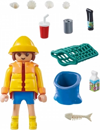 Ez a PLAYMOBIL Special Plus figura felelős magatartásra ösztönzi a gyerekeket a bolygónkkal szemben. A környezetvédő a strandra indul, és összeszedi az eldobált poharakat, italos dobozokat és egyéb hulladékot. A levehető kiegészítőknek és a gazdag tartozékkészletnek köszönhetően a gyerekek órákon át élvezhetik a kreatív játékot, miközben megtanulják, milyen fontos a szelektálás és a szemét összegyűjtése.