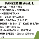 A Panzer III Ausf. L a második világháború egyik leghíresebb német közepes harckocsija volt, amely minden európai fronton és Észak-Afrikában is harcolt. A COBI mini modellje, kiváló 1:72 méretarányú replikaként, lehetővé teszi az eredeti kulcsfontosságú részleteinek megjelenítését, például a forgatható tornyot és a mozgatható lánctalpakat.