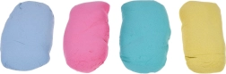 A készlet 4 × 70 g homokot tartalmaz sárga, rózsaszín, zöld és kék színben. A homok nem pereg szét és nem szárad ki, édes rágógumi illatú.