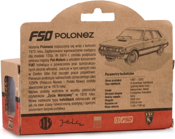 Az FSO Polonez Kelet-Európa egyik legismertebb autója. Ez a modell elegáns fehér színben hűen adja vissza az eredeti karakterét – a hatchback karosszéria arányaitól a finom dizájnelemekig. A fém karosszéria és a műanyag kiegészítők kombinációjának köszönhetően a modell élethű és egyben tartós.