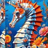 Fedezze fel a víz alatti világ szépségét az Enjoy – tengeri csikó kirakóval. A 1000 darabos készlet precíz kivágást, élénk színeket kínál, és összeállítva 48 × 68 cm méretű képet ad, amely ideális keretezéshez vagy pihentető kihívásként a kirakók szerelmeseinek.