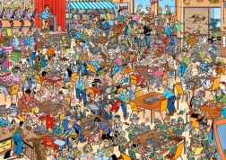Ezek a részletek szinte minden illusztrációjában fellelhetők. **Jan Van Haasteren** részletes, színes és friss illusztrációi kizárólag a **JUMBO** számára készülnek, amelyek humoros képekkel és vidám jelenetekkel vonzzák a tekintetet. Puzzle-jei világszerte népszerűek, és eddig több mint 80 darabot alkotott.