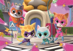 Ez a szett két, Szupercicák témájú gyerekpuzzlet tartalmaz, ideális első kirakónak. A masszív daraboknak és a precíz nyomtatásnak köszönhetően a képek élesek és színben gazdagok, ami megkönnyíti a tájékozódást és támogatja a koncentrációt.