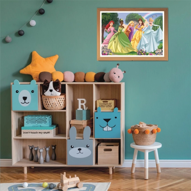 A kedvelt hercegnőket ábrázoló színes jelenet örömet okoz a kirakásban, és motiválja a gyerekeket, hogy a képet végig kirakják.