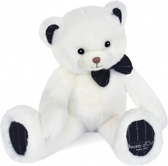 Aranyos, pihe-puha elefántcsontszínű plüss mackó sötétkék, csíkos csokornyakkendővel – tökéletes első kisbarát a kiságyba és bájos szobadísz. Prémium, selymes plüssből készült, megfelel a CE európai szabványoknak, és újszülött kortól ajánlott. A csomag része egy szép ajándékdoboz, így remek ajándék karácsonyra vagy babaszületésre.