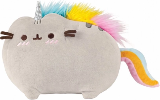 A 24 cm-es, bájos Pusheenicorn plüss elbűvöl minden macska- és unikornisrajongót. Pihe-puha kivitel, szivárványos sörény és farok, valamint finom pír az arcocskán – tökéletes ölelgetni való játék és stílusos dekoráció a gyerekszobába.