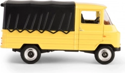 Sárga fényezés, fekete ponyva és részletgazdag kerekek adnak autentikus megjelenést vitrínbe és játékhoz egyaránt.