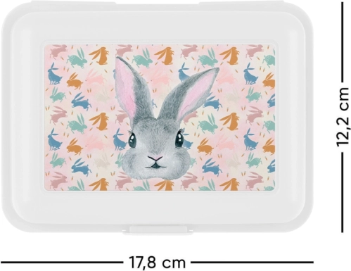 A minimalista, fehér színt egy kedves Bunny motívum teszi teljessé, amely örömet szerez a gyerekeknek és a játékos részletek kedvelőinek. A doboz könnyű, egyszerűen hordozható, és elfér az iskolatáskába vagy a kézitáskába.