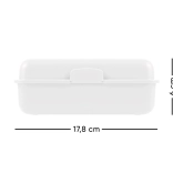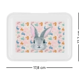 Praktikus uzsonnás doboz tiszta fehér színben, bájos Bunny motívummal, amely frissen és áttekinthetően elkülönítve tartja az ételt a belső elválasztónak köszönhetően. A megbízható, egyklipszes zár megakadályozza a véletlen kinyílást a hátizsákban. Ideális iskolába, kirándulásokra és munkába is.