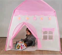 Stílusos gyereksátor rózsaszín-fehér kombinációban, három hálós ablakkal és kényelmes bejárattal – ideális olvasáshoz, játékhoz és a kedvenc játékok rendszerezéséhez. Kompakt, 126 × 130 × 90 cm-es méretének köszönhetően jól illik a gyerekszobába, és magával viheti nyaralóba vagy a teraszra is.