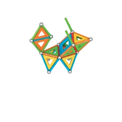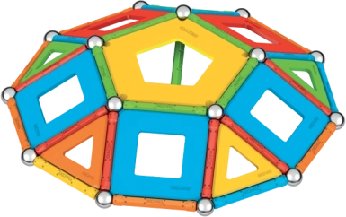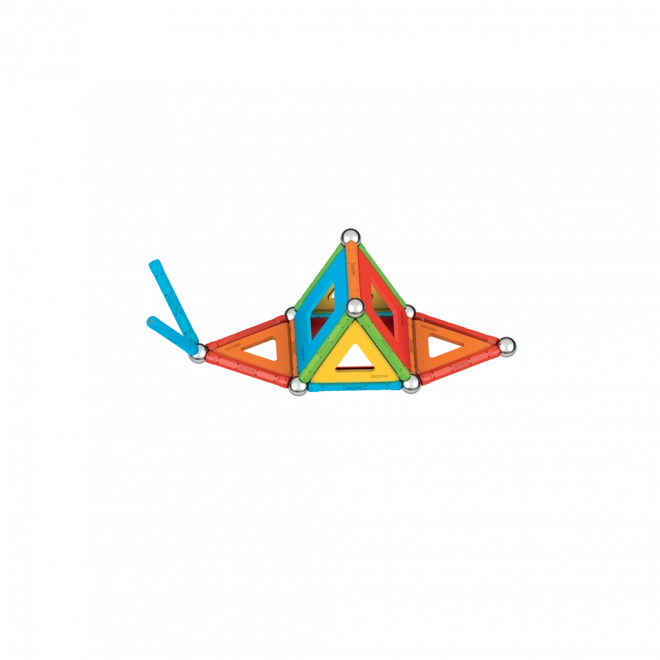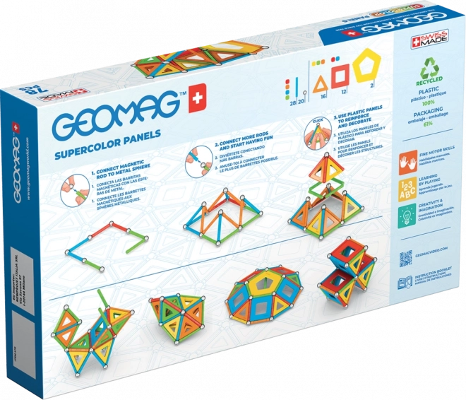 A Geomag Supercolor Panels készlet tökéletesen ötvözi a szórakozást és a tanulást. Az erős mágneses pálcikák és a fémgolyók stabil kapcsolódást biztosítanak, a színes panelek pedig merevítik és díszítik az építményeket. Játék közben a gyerekek fejlesztik képzelőerejüket, megismerkednek a fizika és geometria alapjaival, valamint gyakorolják a szem–kéz koordinációt.