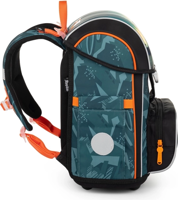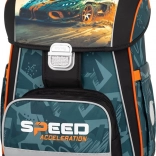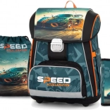 Az versenyautós iskolai szett gyerekek számára már az első osztálytól készült. Tartalmaz egy iskolai hátizsákot anatómiailag formált háttal, ami kényelmes viselést biztosít a párnázott és légáteresztő vállpántok segítségével. A hátizsák nem csak könnyű, hanem biztonságos is a fényvisszaverő elemek miatt. Az elülső zseb ideális uzsonnás doboz számára, és az oldalzsebek elegendő helyet kínálnak további iskolai eszközök számára.