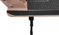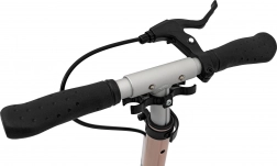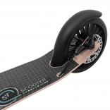 A biztonság az első: a kézi tárcsafék és a hátsó lábfék együttese megbízható, gyors megállást nyújt. A 190 × 35 mm-es gumírozott kerekek jól tompítják az apró egyenetlenségeket, a deszka csúszásgátló felülete pedig nedvesen is tartja a lábat. A kitámasztó sem hiányzik a kényelmes leparkoláshoz.