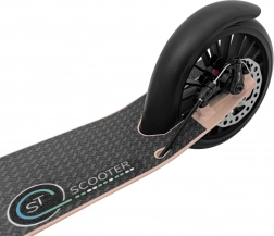 Stílusos SporTrike városi roller könnyű alumínium vázzal, kettős fékrendszerrel (kézi tárcsafék + lábfék) és állítható kormánymagassággal a kényelmes közlekedéshez. Csúszásgátló fellépő, 190 mm-es gumírozott kerekek és praktikus kitámasztó a biztonságért, stabilitásért és egyszerű parkolásért.