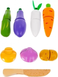 Sárgarépa, uborka, padlizsán, hagyma és mások élénk színekben segítik a színek, formák és a szókincs elsajátítását.