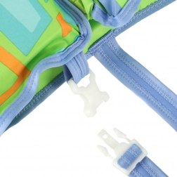 Színes gyerek úszómellény habbetétekkel, amelyek kiegyensúlyozott felhajtóerőt és biztonságot a vízben nyújtanak. Elülső, automatikus reteszelésű cipzárral, állítható, csattal ellátott pánttal és tartós, UPF 50+ védelemmel rendelkező szövettel készül, amely óvja a színeket a kifakulástól. Ideális úszástanuláshoz és a gyermekek önbizalmának növeléséhez, kb. 51 cm mellkaskerület és 11–19 kg testsúly esetén.