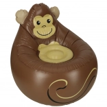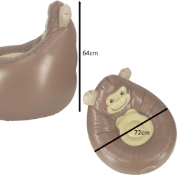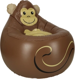 Aranyos, mosolygós majom formájú felfújható gyerekfotel rengeteg örömet visz a szobába és a kertbe. Kényelmes, tartós PVC szerkezet, kompakt méretek és akár 70 kg teherbírás biztosítják a biztonságos, kellemes ülést különböző korú gyerekeknek. Leeresztve könnyen tárolható, és a javítás egyszerű a mellékelt foltnak köszönhetően.