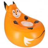 Cuki felfújható gyerekfotel róka dizájnnal, szuper kényelmet, tartós PVC szerkezetet és könnyű tárolást kínál leeresztés után. 70 kg teherbírásának köszönhetően különböző korú gyerekeknek is megfelelő, és remekül illik a gyerekszobába vagy a kertbe.