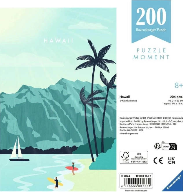 Fedezze fel a pillanat varázsát a Ravensburger Hawaii puzzle-lal, amely 200 darabot tartalmaz, és a nyugalom és pihenés világába vezet.