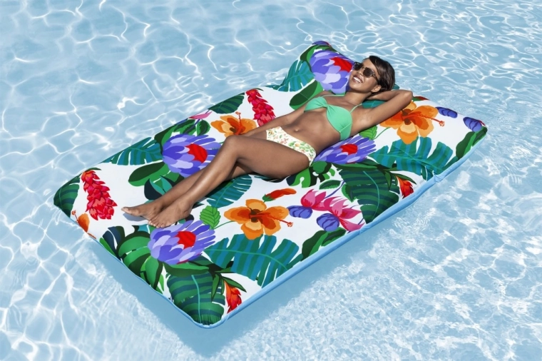 Élvezze a gondtalan pihenést a medence vagy a tó felszínén. Ez a tágas, 200 × 123 cm-es felfújható nyugágy stabil felhajtóerőt nyújt, miközben rendkívüli kényelmet biztosít. A kellemes textil huzat könnyen levehető és gépben mosható, így nyugágya mindig tiszta és készen áll a következő fürdőzésre.