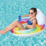 A stílusos, szivárványos BESTWAY úszógumi ideális medencébe, tóra és a strandra is. Az integrált párnázott fejtámla valódi pihenést nyújt a víz felszínén, míg a praktikus pohártartó gondoskodik róla, hogy itala mindig kéznél legyen.