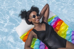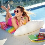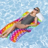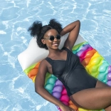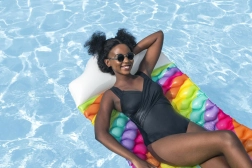 A BESTWAY szivárványos felfújható matrac ideális választás a gondtalan vízi pihenéshez. A minőségi PVC ellenáll a sérüléseknek és a napsugárzásnak, a több légkamra pedig kiváló stabilitást ad a vízen. Az integrált párna megtámasztja a fejet, így a napozás és a hosszabb relaxáció is kényelmes.