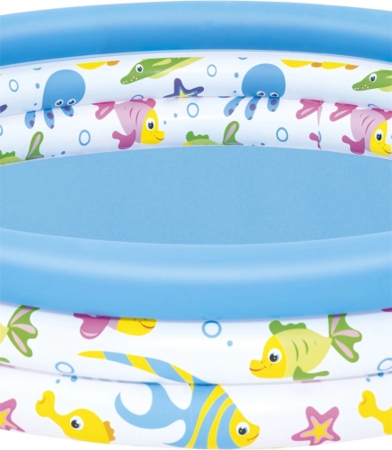 Szerezz örömet a kicsiknek a Tenger világa felfújható medencével, amely élénk színeivel és tengeri motívumaival minden gyermeket elbűvöl. Tartós, tesztelt vinilből készült a hosszú élettartamért.