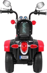 Stílusos gyermek elektromos chopper motor NightBike, amely valósághű vezetési élményt nyújt a kis motorosoknak. A három keréknek köszönhetően stabil, kényelmes üléssel és LED első fényszóróval rendelkezik. A szórakozásról audió panel dallamokkal és AUX bemenettel gondoskodik, míg a RS-380 motor 6 V-on és a hátramenet megkönnyíti a kezelést és biztonságos vezetést biztosít.