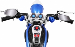 A stílusos Chopper NightBike gyermek elektromos motorkerékpár valósághű megjelenésével, stabil háromkerekű kialakításával és egyszerű előre/hátra vezérlésével örömet szerez a kis motorosoknak. Kínál LED első lámpát, audio panelt dallamokkal és AUX bemenetet a kedvenc zenékhez. A 6 V-os erős motor és a 6 V/4,5 Ah akkumulátor garantálja a szórakoztató vezetést, a széles kerekek stabilitást és biztonságot adnak, a kényelmes ülés pedig ideális a mindennapi kiruccanásokhoz.