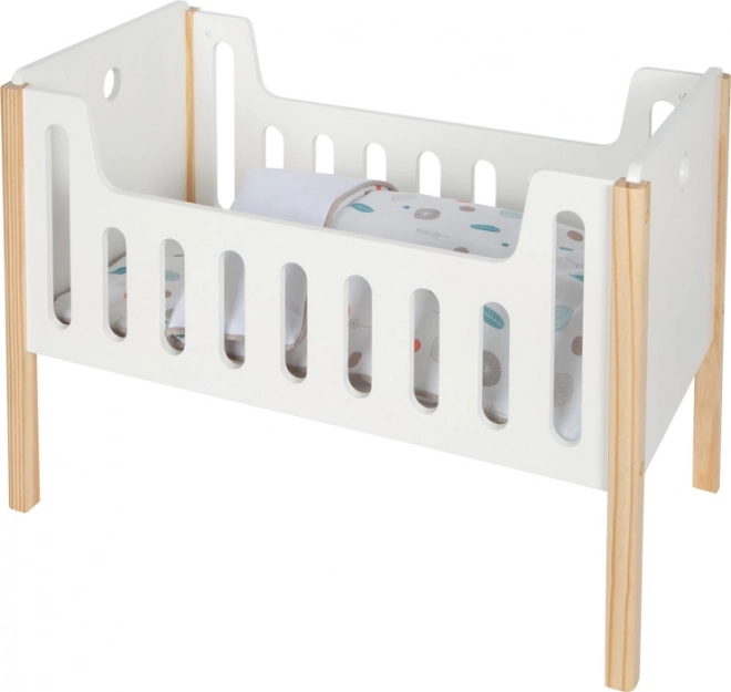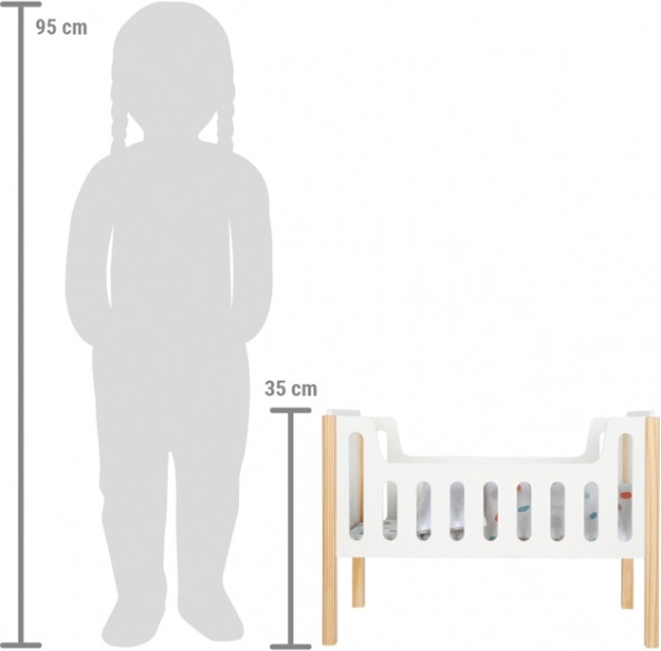 Ez a modern babakocsi a skandináv lineáris dizájnnal a babák vagy plüssállatok altatására kiválóan alkalmas. A kiváló minőségű kidolgozás lekerekített éleket és masszív fa elemeket tartalmaz a nagyobb tartósság és biztonság érdekében. A nagy takaróval kétoldalas ágynemű csomagolásának köszönhetően kényelmes alvást biztosít a nagyobb babák számára is. A felületek ergonomikusan kialakítottak a kényelmes játszási élmény érdekében.