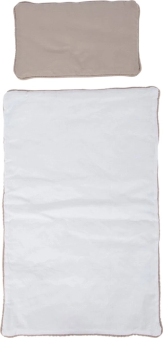 Kétoldalas ágynemű finom színekben, nagy takaróval biztosít kényelmet a babák vagy plüssállatok számára.