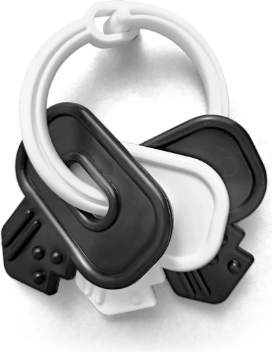 A kontrasztos fekete-fehér kulcsok ideális első játékok a babáknak – támogatják a fókuszt és a vizuális észlelést a korai életkorban. A műanyag és szilikon kombinációjának köszönhetően a kulcsok könnyűek, tartósak és kellemes tapintásúak. Kifejezetten a kis kezekhez és a mindennapi felfedezéshez.