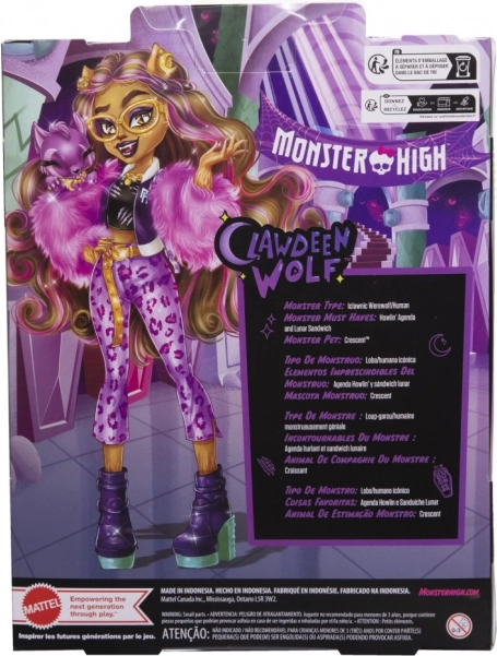 Fedezd fel Clawdeen Wolfot a merész lila megjelenésben, amely bizonyítja kifinomult divatérzékét. A mozgatható ízületeknek köszönhetően könnyen beállíthatod különböző pózokba, és megalkothatod a saját, „szörnyen” izgalmas történeteidet. A szett része hűséges kisállata, Crescent is, készen a végtelen kalandokra.