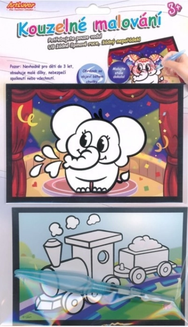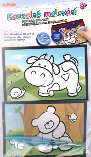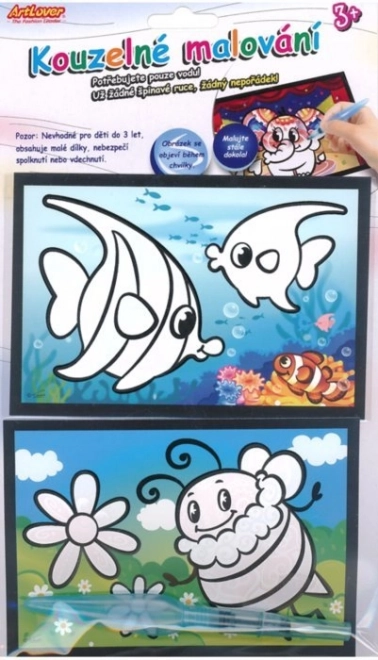 A varázslatos vízfestés a legkisebb alkotókat is leköti. Csak vízre van szükség, és a képeken található speciális fehér réteg a benedvesítés hatására eltűnik, így varázslatos, színes képeket hozhatsz létre. Amint a kép megszárad, ismét fehér lesz a felület, így újra és újra lehet festeni.