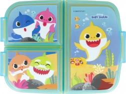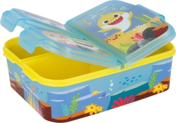 Multifunkcionális uzsonnás doboz Baby Shark ideális segítőtárs gyerekek számára utazásokhoz. Három különálló rekesszel rendelkezik, amelyek lehetővé teszik, hogy az étel friss és elkülönített maradjon, legyen szó gyümölcsről, szendvicsről vagy édes finomságról.