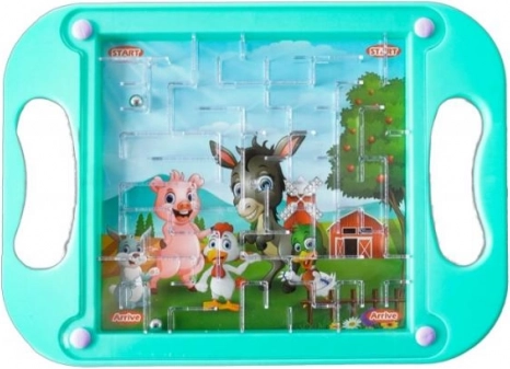 A türkiz modell farmot ábrázol kisállatokkal, mint például malac, szamár és kacsa. Könnyen hordozható az oldalsó fogantyúknak köszönhetően.