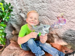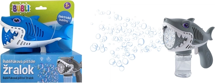 A gyerekek imádják a buborékokat, és a buborékfújó pisztoly cápás formájával órákon át tartó szórakozást nyújt. A pisztoly működése a ravasz meghúzásán alapul, amely aktiválja a levegőfújó mechanizmust a buborékfolyadékon keresztül. A ravasz meghúzása után folyamatosan nagy mennyiségű buborék száll fel, amit a gyerekek imádnak.