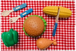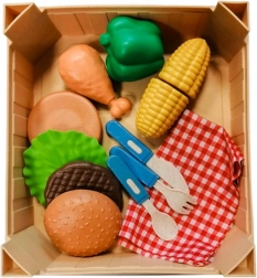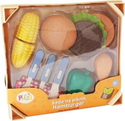 A Plejo Piknik készlet ideális minden kis szakács számára, aki szeretné megélni az autentikus érzést a saját hamburgerének elkészítése során. Tartalmaz egy színes választékot műanyag élelmiszer-utánzatokból, beleértve a hamburger zsemlét, húst, zöldségeket és kiegészítőket.