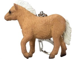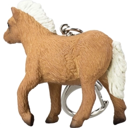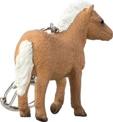 Magasan részletezett miniatúra shetlandi csikó kulcstartón.