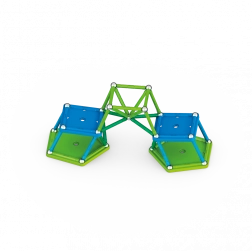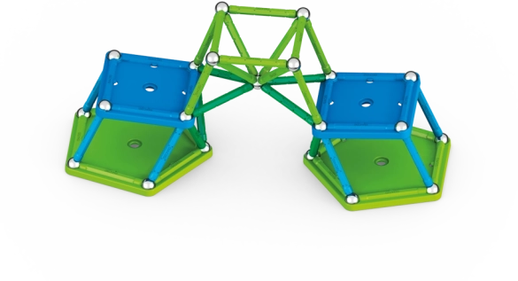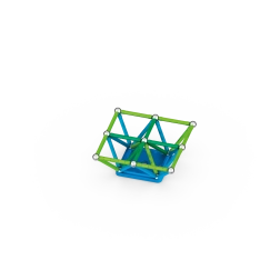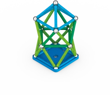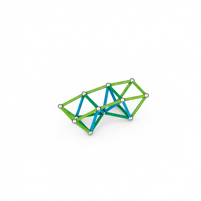 A készlet mágneses rudakat és golyókat kínál, amelyek biztosítják az egyes konstrukciók tartósságát és stabilitását. Két speciális négyzetes és két ötszögletű alapot tartalmaz.