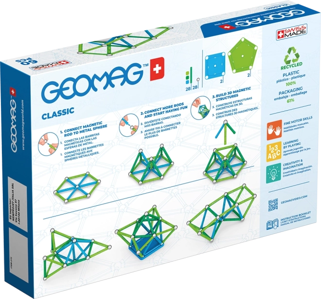 Tapasztalja meg a forradalmat a kockajátékban a Geomag Classic Recycled készlettel, amely új lehetőségeket kínál a kreatív építéshez. Ez az építőkészlet mágneses rudakat és golyókat tartalmaz, amelyek megkönnyítik az összekapcsolást és stabil szerkezeteket.