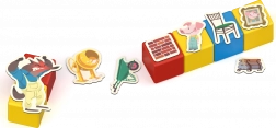 31 színes klip figurákkal és jelenetekkel a Három kismalac meséjéből, melyek fejlesztik a fantáziát, a nyelvi készségeket és az önálló mesélést.