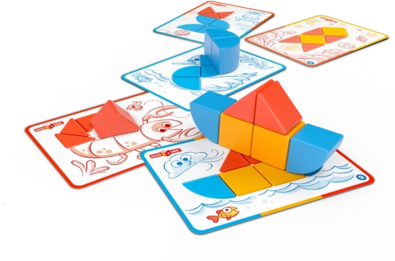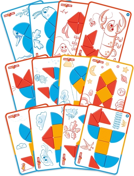 A csomag 6 kétoldalas kártyát tartalmaz 12 feladattal, amelyek az egyszerű kirakóktól a haladóbb formákig vezetnek, és ösztönzik a logikus gondolkodást.