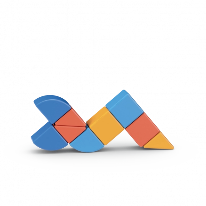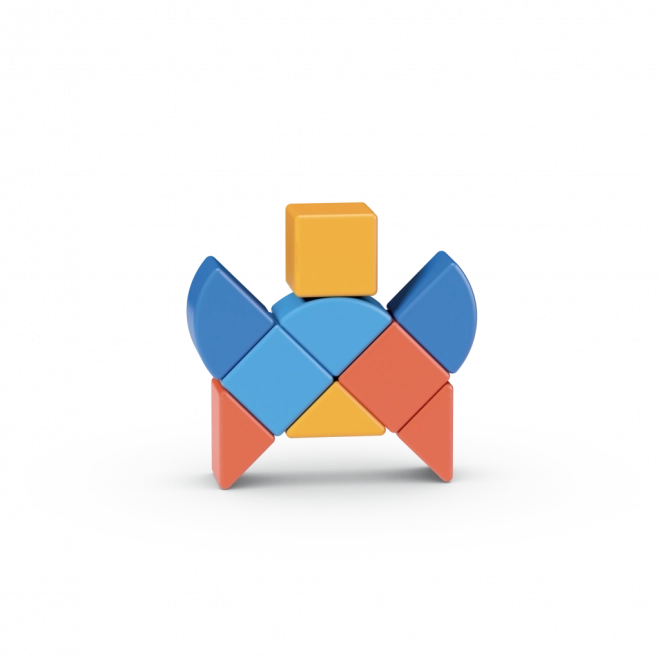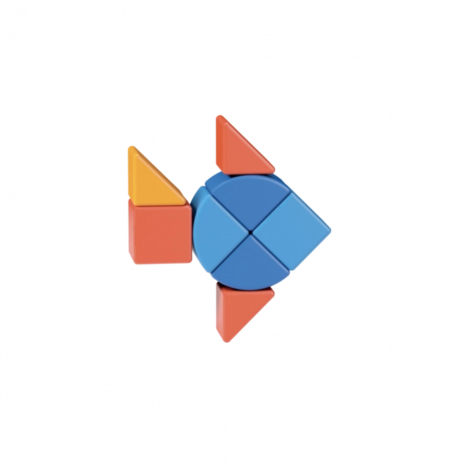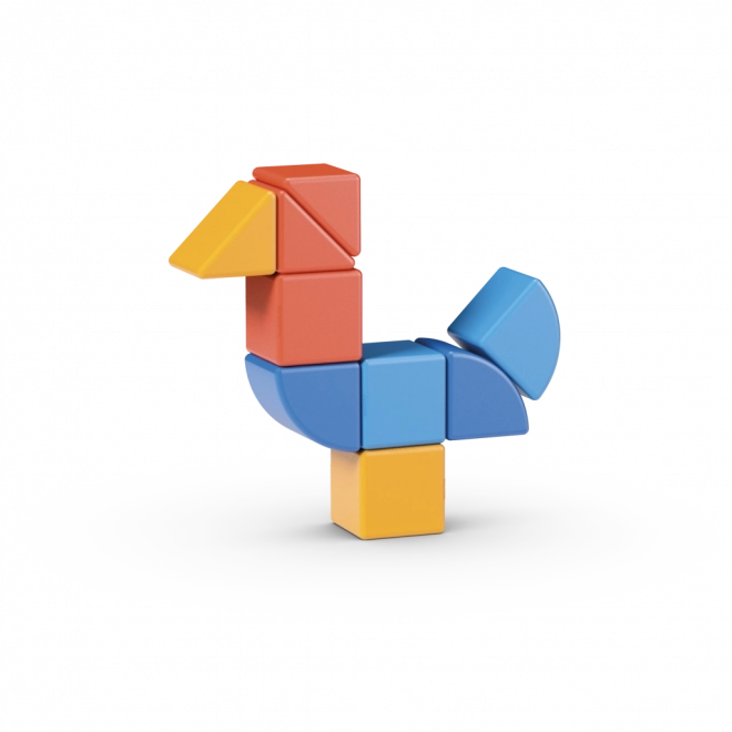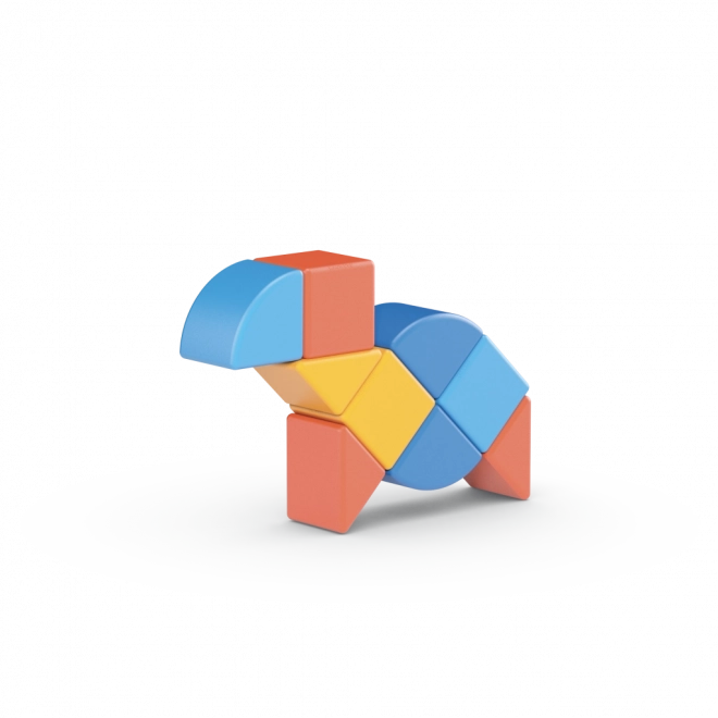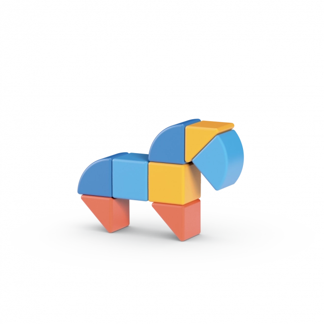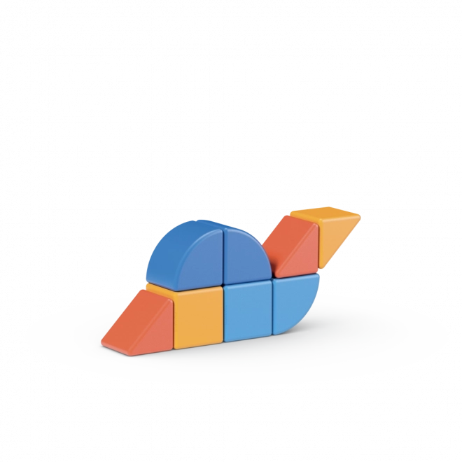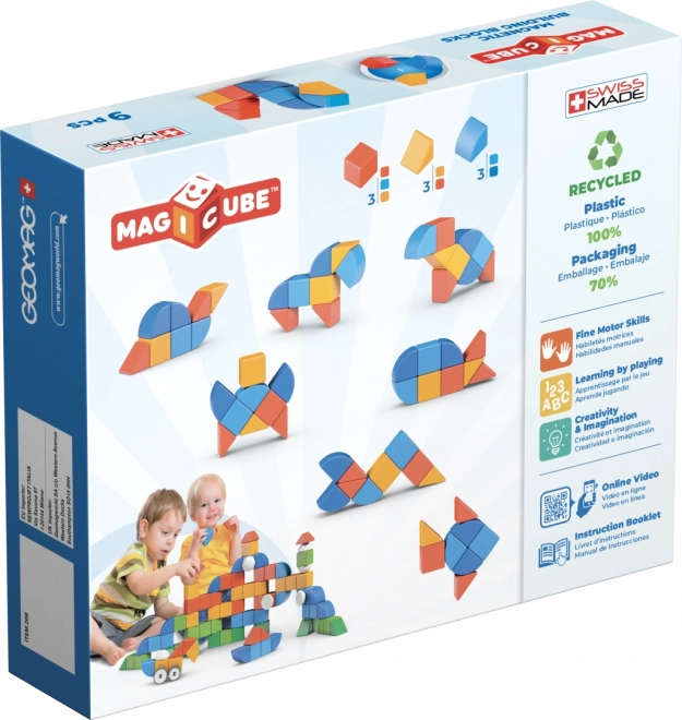 A mágneses kockák mellett a készlet két további mágneses alakzatot is tartalmaz. Összesen 9 darabból áll. 1 éves kortól ajánlott.