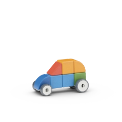 A készlet része négy mágneses kerék, amelyekkel a gyerekek egyszerű kis autókat építhetnek, így a játék mozgással és új történetekkel bővül.