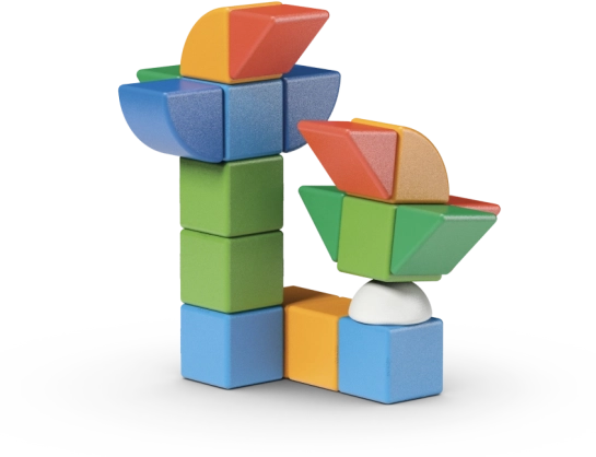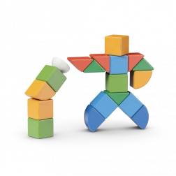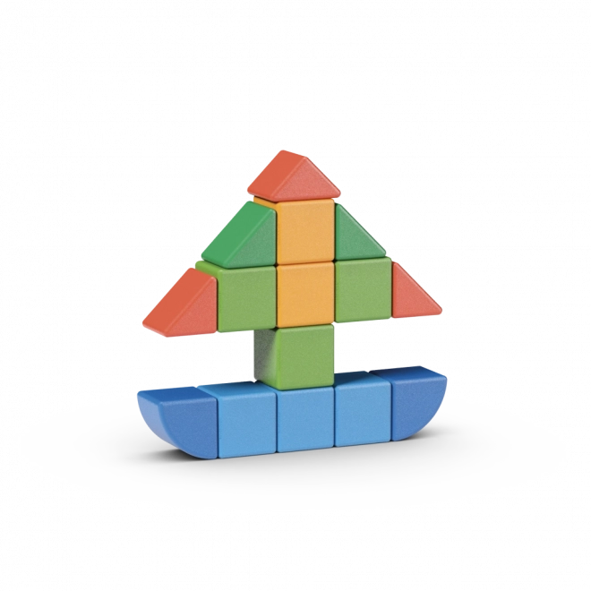 Nagy, színes, lekerekített élű elemek, kis kezekre tervezve. Fejlesztik a finommotorikát, a szem–kéz koordinációt és a fantáziát.