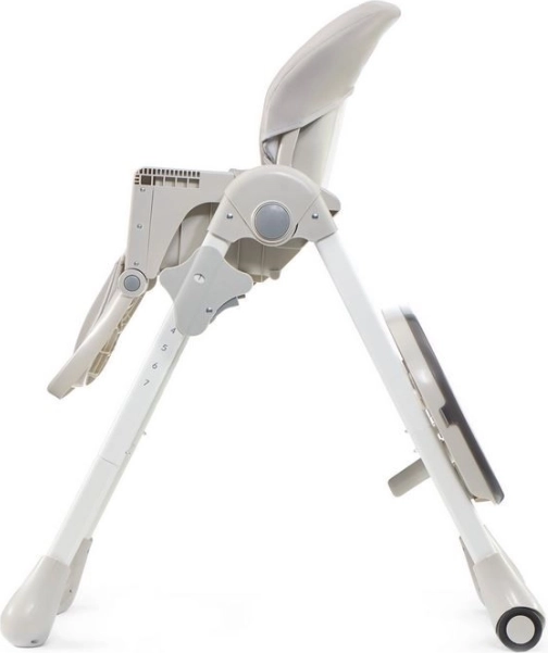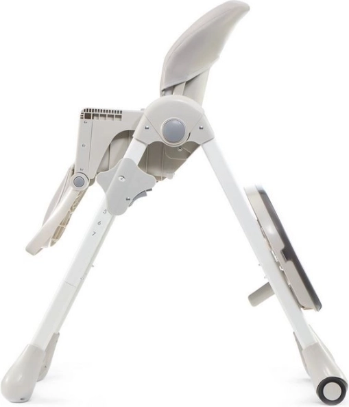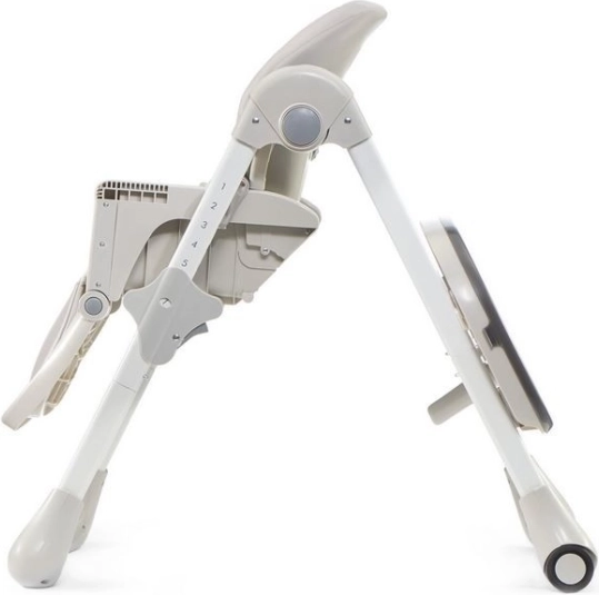 Az átgondolt ergonómia megfelelő támaszt ad a gyermeknek: az állítható lábtartó (3 fokozat) és a tálca 3 lépéses előre-hátra állítása ideális testhelyzetet biztosít étkezés közben. A stabil, mégis könnyű váz kerekekkel és fogantyúval a háttámlán megkönnyíti a lakáson belüli mozgatást. Az etetőszéket pár másodperc alatt szinte laposra összecsukhatja, a tálcát pedig a hátsó lábakra rögzítheti, így minimális helyet foglal.